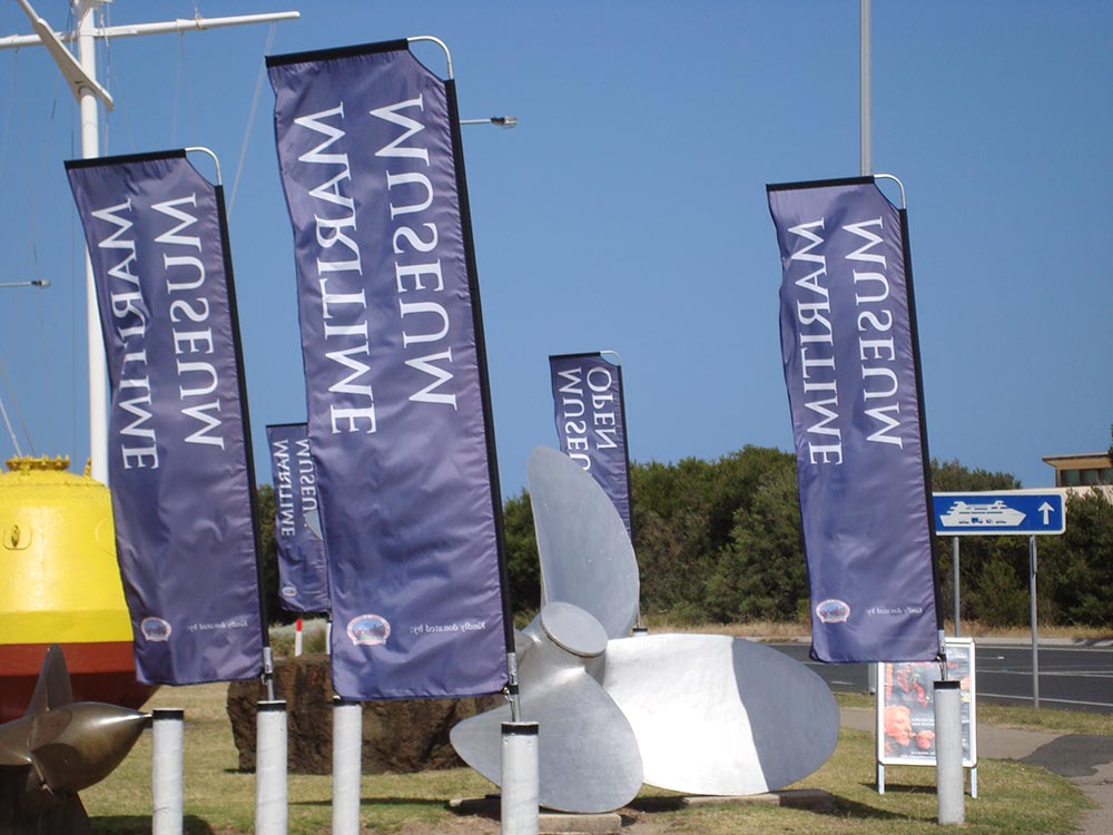 These flags are made in Australia in our Geelong facility. They can be produced in both single sided or double sided printing. Suitable for both internal and external use with a choice of base stands for different purposes.