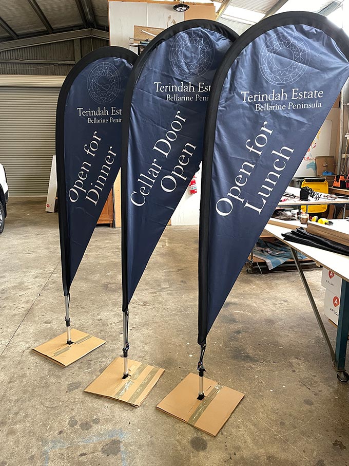 Our teardrop flags are built to perform. The flagpoles are made of lightweight carbon composite fibre, ensuring excellent strength and flexibility. We print directly onto the fabric with UV protected inks to lengthen the life of your wingtip flag. You also have the options of printing on a single side or both sides.