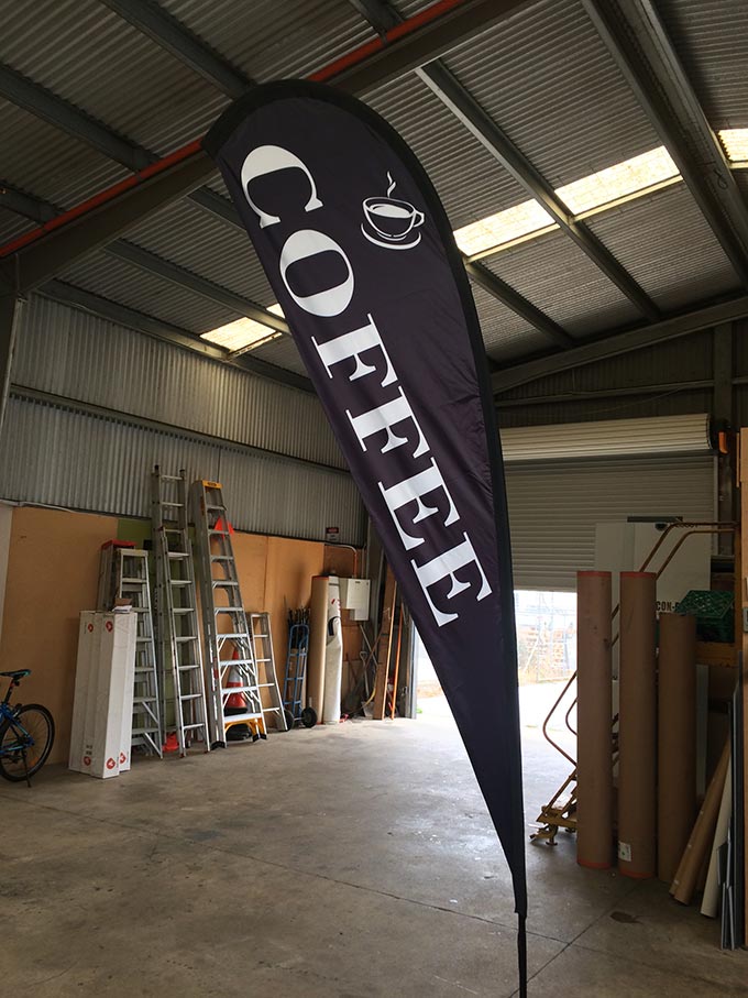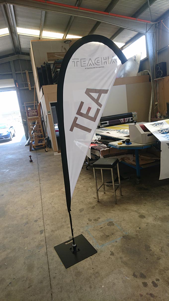 A teardrop flag is a vertical outdoor advertising banner, also known as a Teardrop Banner, the name comes from the flag being shaped like a tear drop. The Teardrop banner is an ideal banner for promoting outdoor events.